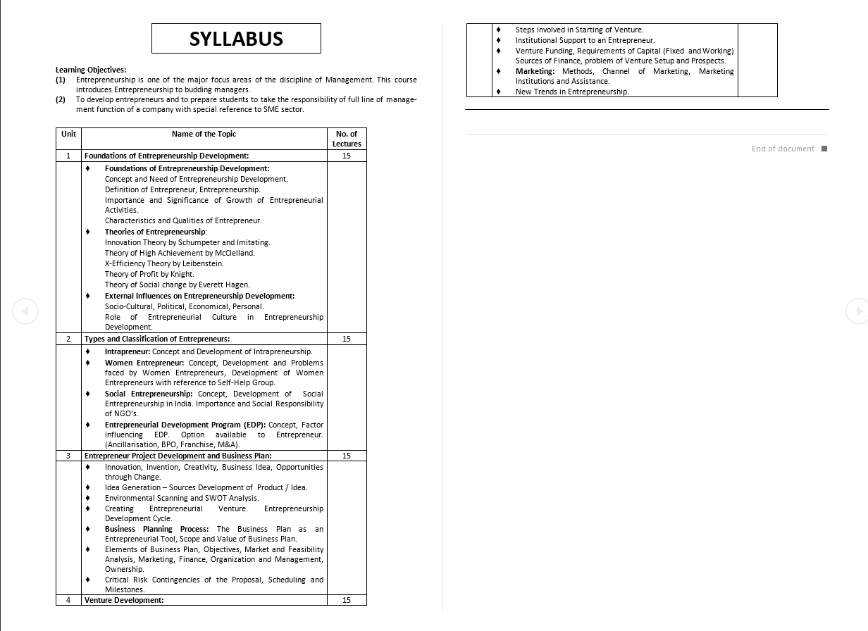- Women Entrepreneur: Concept, Development and Problems faced by Women Entrepreneurs, Development of Women Entrepreneurs with reference to Self-Help Group.